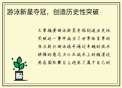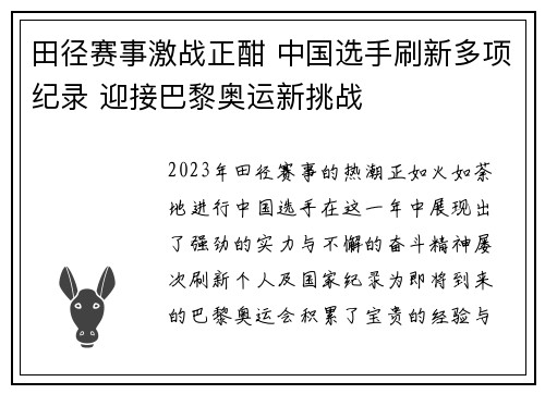 文章摘要:潘展乐,这位在中国田径界崭露头角的青年运动员,凭借着不懈的努力与出色的竞技表现,突破自我、刷新纪录,为中国田径注入了新的活力。在他的职业生涯中,潘展乐不仅挑战自己的极限,也为中国田径带来了更多的荣耀与自信。本文将从四个方面详细探讨潘展乐如何通过突破自我创下新纪录,并在中国田径的腾飞过程中,贡献自己的力量。文章将重点分析潘展乐的个人成长历程、技术提升、心态调整以及对中国田径发展的推动作用,...